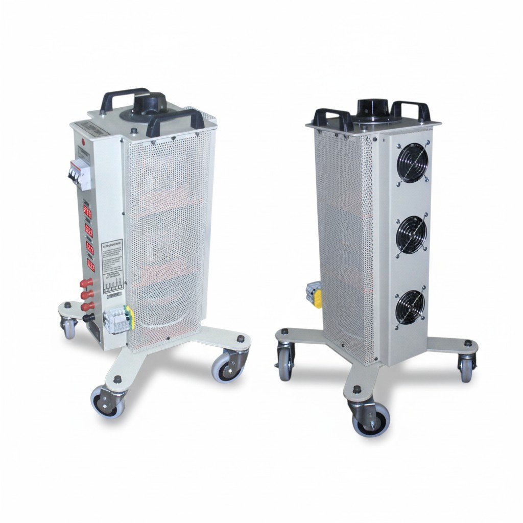 Estos equipos cuentan con un voltímetro digital de salida True RMS, y tres amperímetros digitales True RMS, uno por cada fase,con precisión de 0,5%. De esta forma se puede medir tanto la tensión de salida, como la corriente de consumo de cada fase.